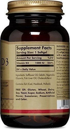 Συμπλήρωμα διατροφής της εταιρείας Solgar με βιταμίνη D3 οπού υποστηρίζει την άμυνα του οργανισμού και την υγεία οστών & μυών, ενώ συμβάλλει και στη γενικότερη ευεξία του οργανισμού.