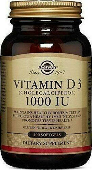 Solgar Vitamin D3 Βιταμίνη για Ενίσχυση του Ανοσοποιητικού & την Υγεία των Οστών 1000iu 100 μαλακές κάψουλες