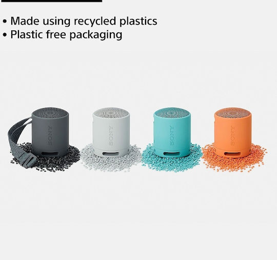 Το σώμα και το λουράκι του XB100 είναι κατασκευασμένα εν μέρει από ανακυκλωμένα πλαστικά για περιορισμό του αντίκτυπου στο περιβάλλον. Μπορούμε με υπερηφάνεια να πούμε ότι στις συσκευασίες της Sony δεν περιέχονται πλαστικά. Η αγορά αυτού του ηχείου θα σας κάνει να αισθάνεστε το ίδιο καλά όσο κατά την ακρόαση μουσικής από αυτό.