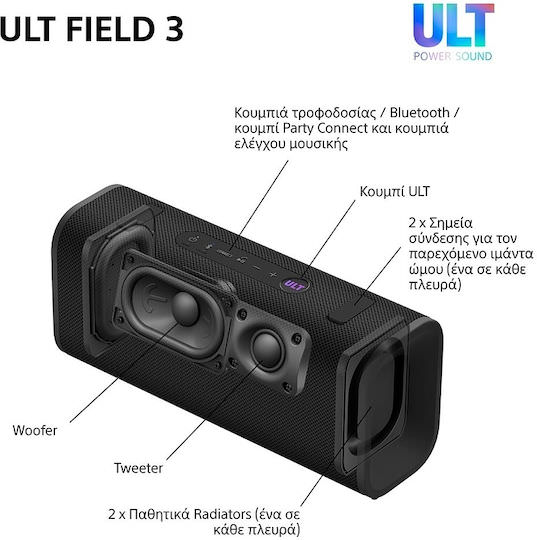 Sony ULT FIELD 3 Αδιάβροχο Ηχείο Bluetooth 27W με Διάρκεια Μπαταρίας έως 24 ώρες Γκρι