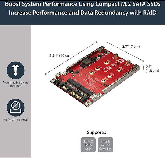 StarTech Dual-Slot M.2 Drive to SATA Adapter for 2.5″ Drive Bay Κόκκινο S55058280