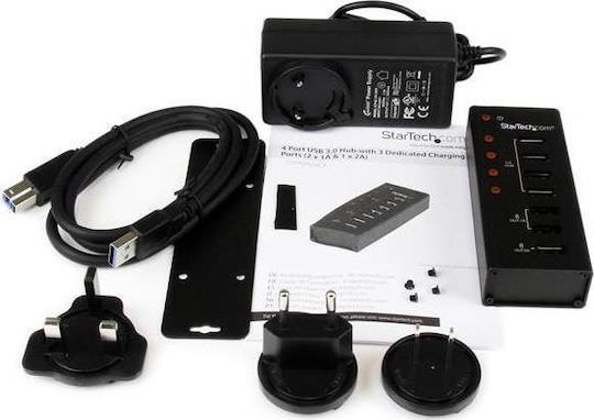 StarTech USB 3.0 Hub 4 Θυρών με σύνδεση USB-A & Θύρα Φόρτισης και Εξωτερική Παροχή Ρεύματος