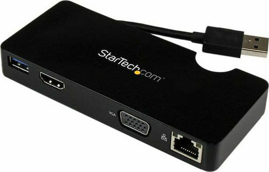 StarTech USB-A Docking Station με DisplayPort Ethernet Μαύρο (USB3SMDOCKHV)