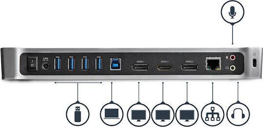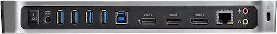 StarTech USB-A Docking Station με HDMI/DisplayPort 4K PD Ethernet και συνδεση 3 Οθονών Μαύρο (USB3DOCKH2DP)