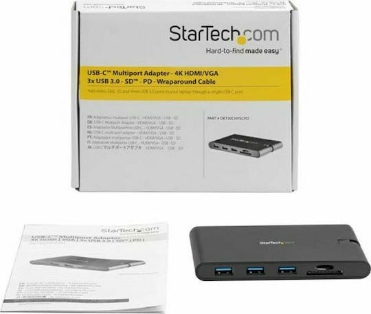 StarTech USB-C Docking Station με HDMI 4K PD Ethernet και συνδεση 2 Οθονών Μαύρο (DKT30CHVSCPD)