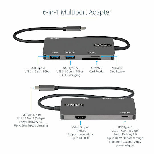 StarTech USB-C Docking Station με HDMI 4K PD Γκρι (DKT30CHSDPD)