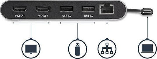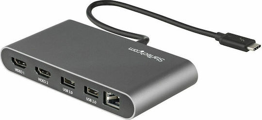 StarTech USB-C / USB-A Docking Station με 4K Ethernet Γκρι (TB3DKM2HDL)