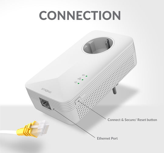 Strong Powerline 1000 V2 KIT Διπλό για Ενσύρματη Σύνδεση με Passthrough Πρίζα και Θύρα Gigabit Ethernet