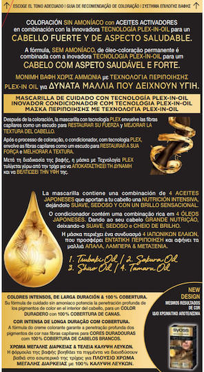 Μόνιμη βαφή με έλαια που δεν περιέχει αμμωνία για μέγιστη ένταση και διάρκεια χρώματος. Η φόρμουλα της βαφής περιέχει έλαια που βοηθάνε τα χρωστικά πιγκμέντα να διεισδύουν βαθιά στο εσωτερικό της τρίχας για μέγιστη ένταση και διάρκεια χρώματος, ενώ το περιποιητικό έλαιο Argan, γνωστό για τις ιδιότητες του, αφήνει τα μαλλιά απαλά, λαμπερά και μεταξένια. Προσφέρει εντατική περιποίηση μετά τη διαδικασία της βαφής για δυνατά μαλλιά που δείχνουν υγιή.