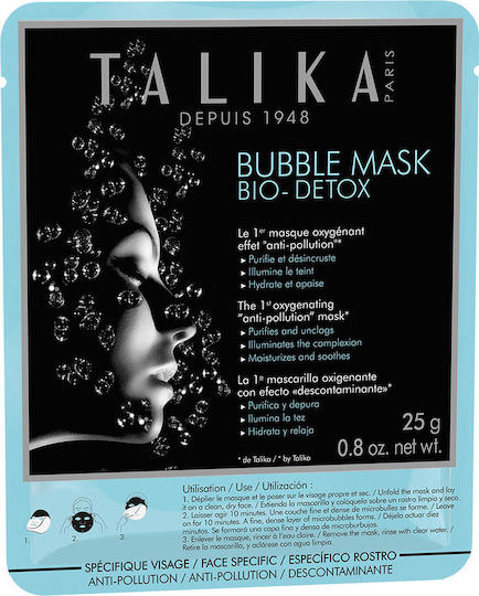 Talika Bubble Bio Detox 1τμχ Μάσκα Ομορφιάς Προσώπου για Αποτοξίνωση με Ενεργό Άνθρακα 25gr