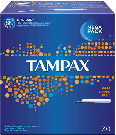 Ταμπόν Super Plus Tampax με χωρητικότητα 30 uds. Προϊόν για προσωπική υγιεινή με τύπο Υγιεινά Ταμπόν.