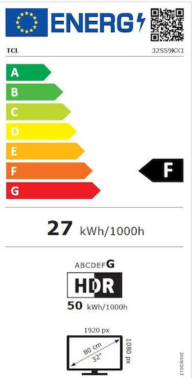 TCL Smart Τηλεόραση 32″ Full HD QLED S59K HDR (2025) 32S59K