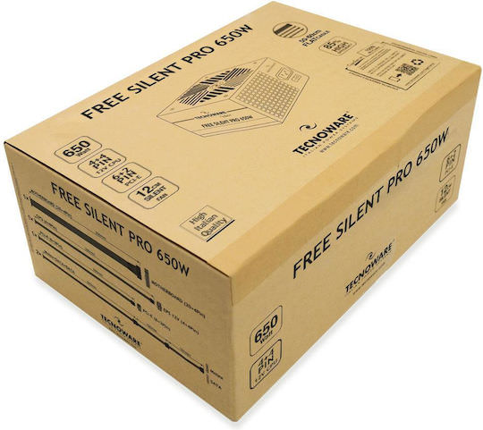 Το Tecnoware Free Silent Pro 650W (Μοντέλο: FAL651FSP12) είναι μία εσωτερική μονάδα τροφοδοσίας ATX σχεδιασμένη για προσωπικούς υπολογιστές. Προσφέρει ονομαστική ισχύ 650 watt και υποστηρίζει ευρύ εύρος τάσης εισόδου από 180 έως 264 Vac σε συχνότητα 50/60 Hz, καθιστώντας την μια ευέλικτη επιλογή για διάφορα συστήματα.