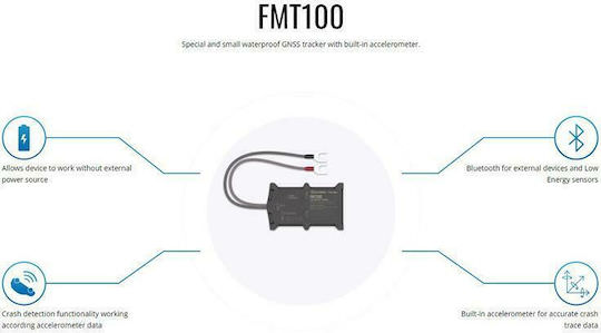 Το FMT1001A9S01 είναι ένα μοντέλο έξυπνης τεχνολογίας και μικρό σε μέγεθος. Υποστηρίζει σύνδεση Bluetooth, έχει εσωτερική κεραία GNSS μεγάλης εμβέλειας και επίσης διαθέτει εσωτερική εφεδρική μπαταρία. Είναι εξοπλισμένο με ειδικό clamp σύνδεσμο για γρήγορη σύνδεση του καλωδίου τροφοδοσίας με την μπαταρία του αυτοκινήτου. Διαθέτει στερεά αδιάβροχη θήκη και ενσωματωμένο αισθητήρα επιταχυνσιόμετρου με εξαιρετικά ακριβή λειτουργία εντοπισμού πρόσκρουσης, γεγονός που καθιστά αυτή τη συσκευή απόλυτα κατάλληλη για λύσεις ασφαλιστικής αγοράς.