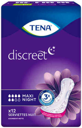 Tena Lady Discreet Night Maxi Γυναικείες Σερβιέτες Ακράτειας Αυξημένης Ροής 6 Σταγόνες 12τμχ