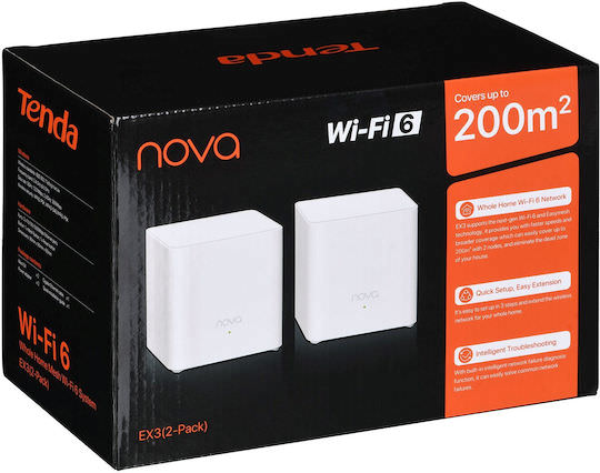 Tenda EX3 WiFi Mesh Network Access Point Wi‑Fi 6 Dual Band (2.4 & 5GHz) σε Διπλό Kit