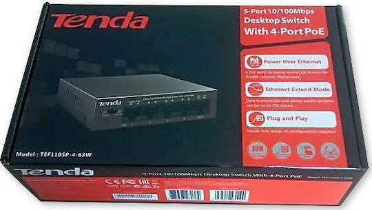 Tenda TEF1105P-4-63W Unmanaged L2 PoE+ Switch με 5 Θύρες Ethernet