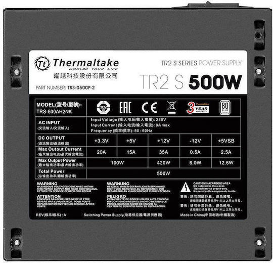 Thermaltake TR2 S 500W Μαύρο Τροφοδοτικό Υπολογιστή Full Wired 80 Plus Standard