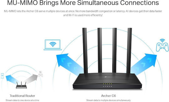TP-LINK Archer C6 v4 Ασύρματο Router Wi‑Fi 5 με 4 Θύρες Gigabit