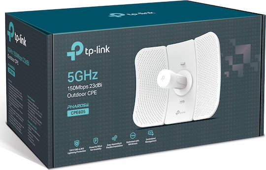 Με κατευθυντική κεραία Cassegrain 23dBi υψηλής απολαβής και ειδικό μεταλλικό ανακλαστήρα, το CPE605 παρέχει εξαιρετική κατευθυντικότητα δέσμης, βελτιωμένη καθυστέρηση και θόρυβο. Η επαγγελματική απόδοση, σε συνδυασμό με τη φιλική προς το χρήστη σχεδιασμό, καθιστά το 5GHz 150Mbps 23dBi Outdoor CPE605 ιδανική επιλογή και οικονομική λύση για εξωτερική ασύρματη μετάδοση δικτύωσης έως και 20 km.