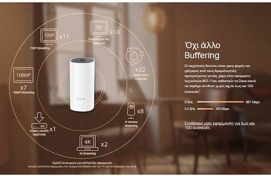 Οι ταχύτητες δικτύου είναι τρεις φορές πιο γρήγορες από τους δρομολογητές προηγούμενης γενιάς, χάρη στην ασύρματη τεχνολογία 802.11ac, καθιστούν το Deco ικανό να παρέχει σύνδεση χωρίς lag σε έως και 100 συσκευές.