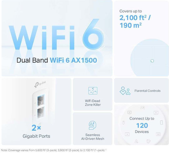 TP-LINK Deco X10 v1 WiFi Mesh Network Access Point Wi‑Fi 6 Dual Band (2.4 & 5GHz) σε Διπλό Kit Λευκό