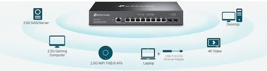 TP-LINK SG3210X-M2 v1 Managed L2 Switch με 8 Θύρες Ethernet και 2 SFP Θύρες