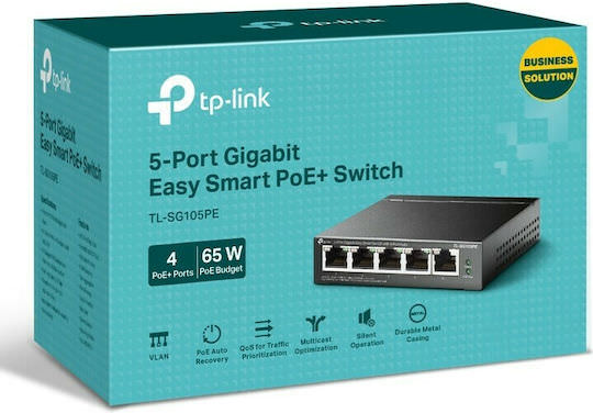 TP-LINK TL-SG105PE v2 Managed L2 PoE+ Switch με 5 Θύρες Gigabit (1Gbps) Ethernet