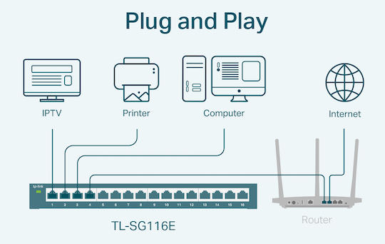 TP-LINK TL-SG116E v1.2 Unmanaged L2 Switch με 16 Θύρες Gigabit (1Gbps) Ethernet