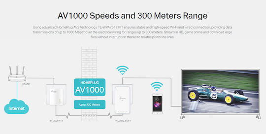 Κιτ Powerline Wi-Fi AV1000: TL-WPA7517 & TL-PA7017