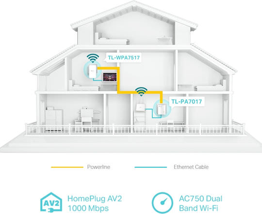 – Κιτ Powerline Wi-Fi AV1000: TL-WPA7517 & TL-PA7017
