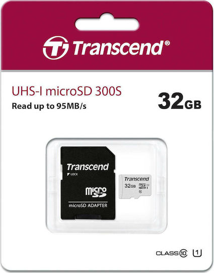 Transcend 300s microSDHC 32GB Class 10 U1 A1 UHS-I με αντάπτορα