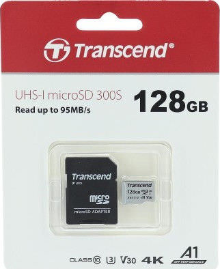 Transcend 300s microSDXC 128GB Class 10 U3 V30 A1 UHS-I με αντάπτορα