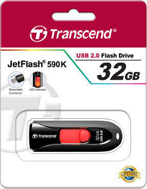 Η βολική JetFlash 590 USB Flash Drive χρησιμοποιεί μια ανασυρόμενη υποδοχή USB για την προστασία των δεδομένων σας κατά τη μεταφορά. Απλώς σύρετε το έγχρωμο ρυθμιστικό για να επεκτείνετε/ανασύρετε την υποδοχή USB 2.0 Hi-Speed.