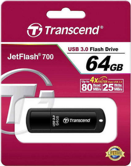 Transcend Jetflash 700 64GB USB 3.0 Stick Μαύρο