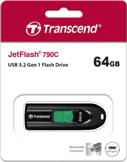 Transcend JetFlash 790C 64GB USB 3.1 Stick με σύνδεση USB-C Μαύρο