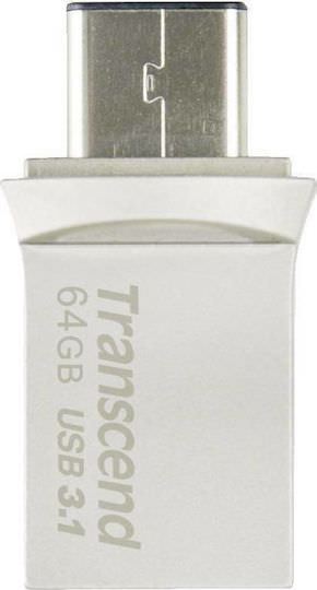 Transcend JetFlash 890 64GB USB 3.1 Stick με σύνδεση USB-A & USB-C Μαύρο