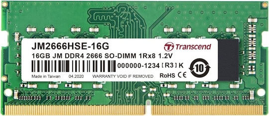 Transcend JetRam DDR4 με Module 1x16GB και Ταχύτητα 2666 για Laptop