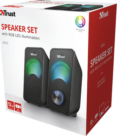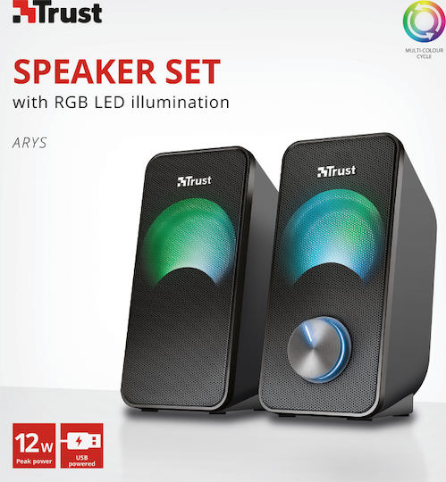 Trust Arys RGB Compact 2.0 Speaker Set Ηχεία Υπολογιστή 2.0 με RGB Φωτισμό και Ισχύ 12W σε Μαύρο Χρώμα
