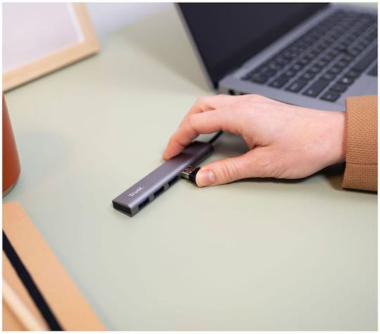 Trust Halyx USB 2.0 Hub 4 Θυρών με σύνδεση USB-A Γκρι