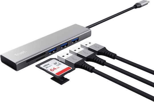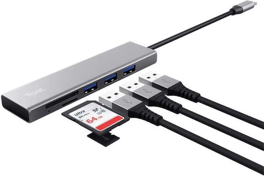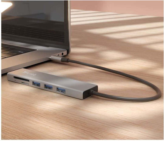 Trust Halyx USB 3.0 Hub 3 Θυρών με σύνδεση USB-C Γκρι