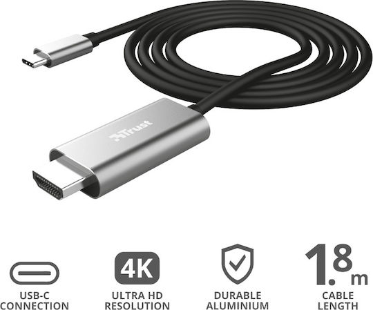 Trust HDMI 1.4 Cable HDMI male – USB-C male 1.8m Ασημί
