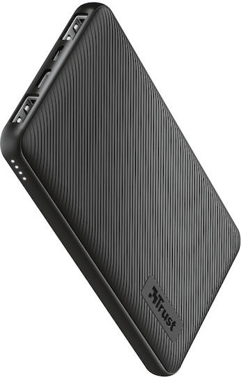 Trust Primo Ultra-thin Power Bank 10000mAh 15W με 2 Θύρες USB-A και Θύρα USB-C Μαύρο