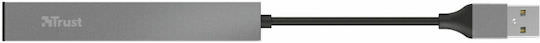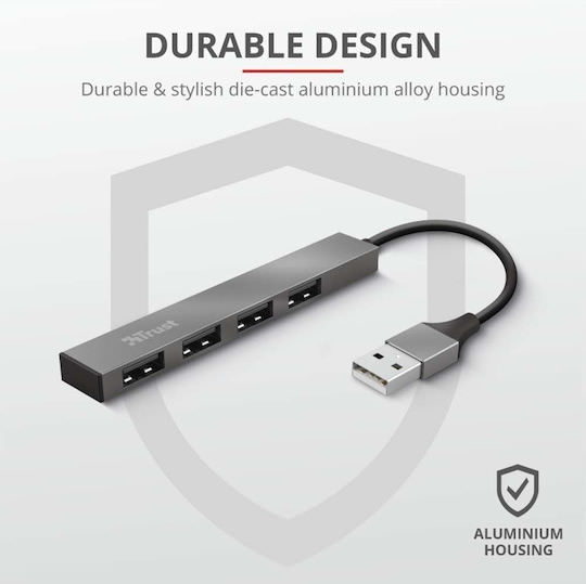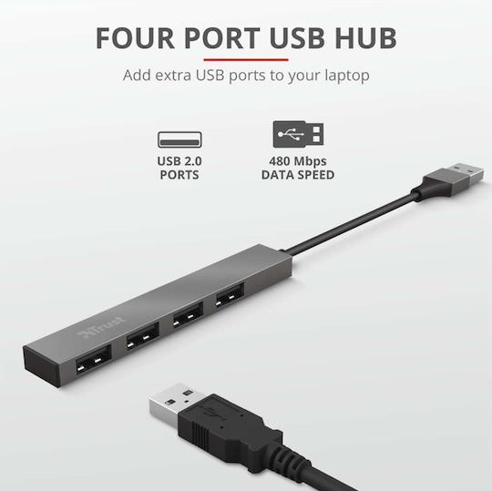 Trust USB 2.0 Hub 4 Θυρών με σύνδεση USB-A Γκρι