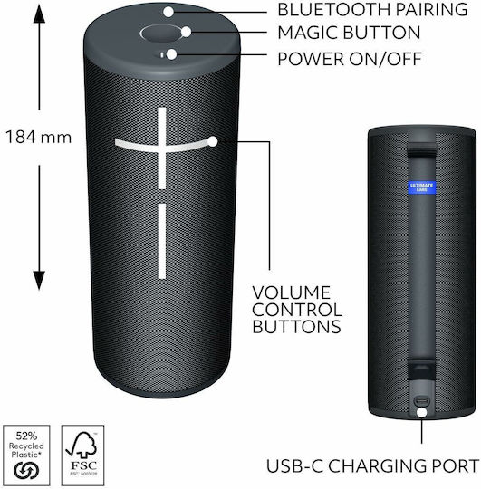Ultimate Ears Boom 4 Ηχείο Bluetooth με Διάρκεια Μπαταρίας έως 15 ώρες Μαύρο