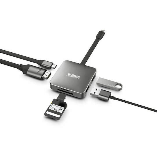 Urban Factory Hubee Light USB-C Docking Station με HDMI 4K PD Ασημί