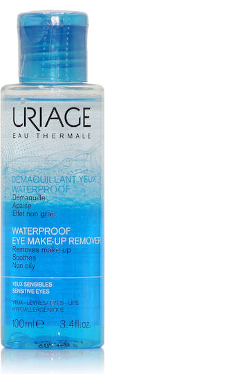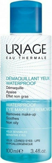 Λοσιόν ντεμακιγιάζ ματιών της Uriage, κατάλληλη για ευαίσθητη επιδερμίδα. Έχει διαυγή όψη και λεπτόρευστη υφή, βασιζόμενη στη σύστασή της που περιέχει περισσότερο νερό και λιγότερα έλαια, συγκριτικά με τις άλλες μορφές καλλυντικών. Διαθέτει αποτελεσματικότερη δράση που αφαιρεί ακόμη και τα υπολείμματα που αφήνει το αδιάβροχο μακιγιάζ στο δέρμα, αποτρέποντας το φράξιμο των πόρων και βοηθώντας το να αναπνεύσει καλύτερα. Ταυτόχρονα αποφεύγεται η πρόκληση φαγούρας, ερεθισμών, ερυθρότητας καθώς και διαφόρων άλλων δυσάρεστων για την επιδερμίδα συνεπειών.