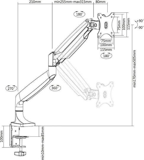 Value Βάση Γραφείου Οθόνης με Βραχίονα Ασημί (17.99.1145)