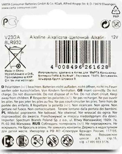 Varta Profesional Electronics Αλκαλική Μπαταρία A23 12V 1τμχ
