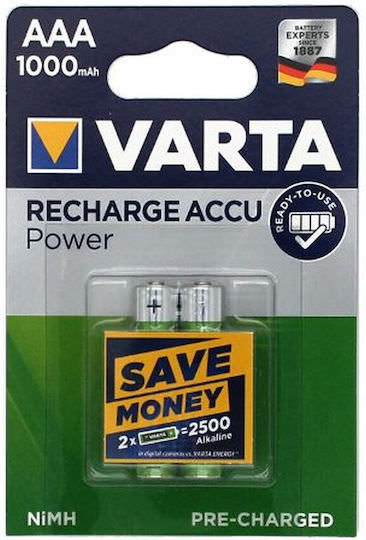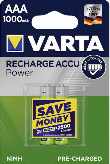 Varta Rechargeable Accu Επαναφορτιζόμενες Μπαταρίες AAA Ni-MH 1000mAh 1.2V 2τμχ